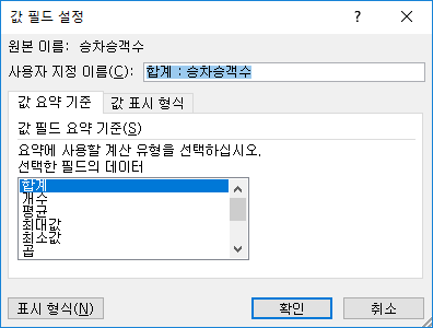 값 필드 설정을 통해서 바꿀 수 있음 - 데이터 원본의 변경을 자동으로 업데이트 하지 않음