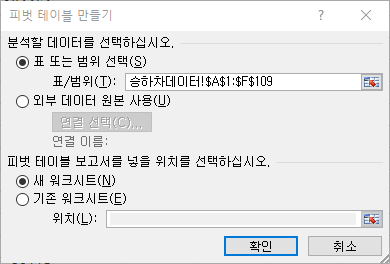 - 피벗테이블의 데이터 출처는 범위(Range)보다 테이블(Table)이 바람직함