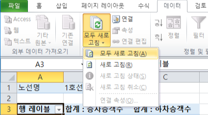 - 데이터 -> 모두 새로 고침을 선택함으로써 업데이트 할 수 있음