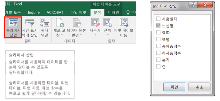 슬라이서 : 복수 - 피벗 차트 삽입