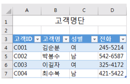 · ex '고객명단'