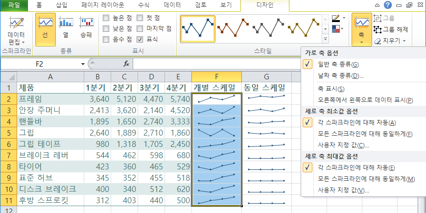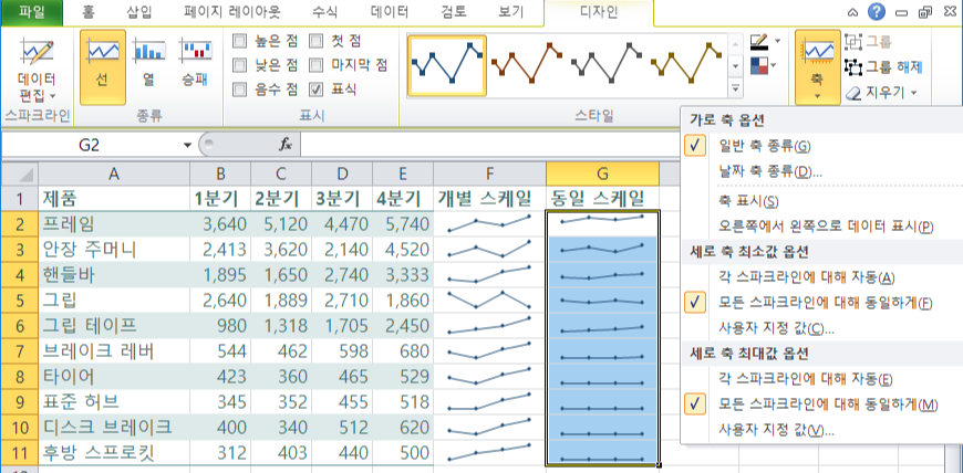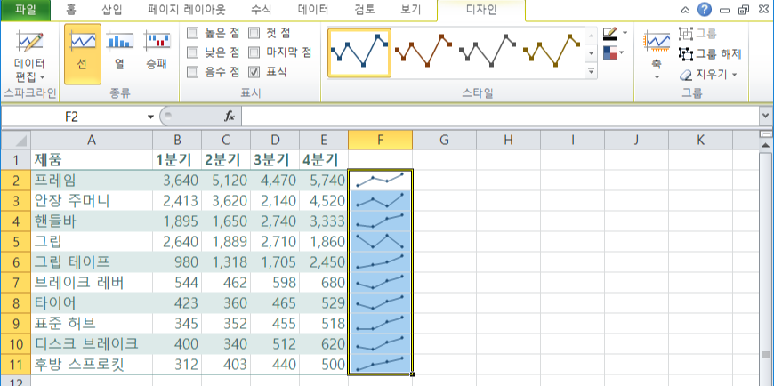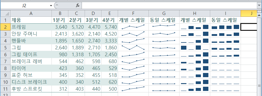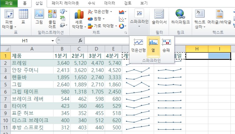 ▶ 스파크 라인 : 라인 차트와 바 차트