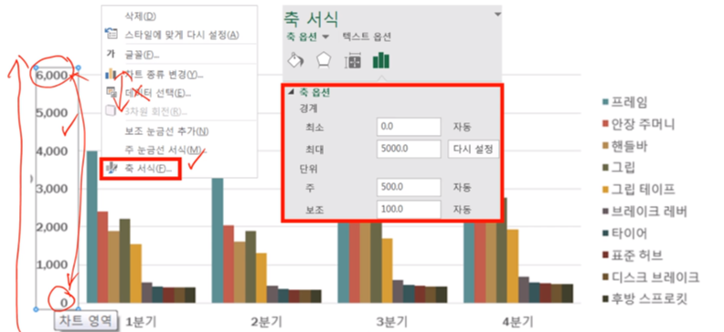 개별 스케일과 동일 스케일 - 동일 스케일은 다른 차트와 비교가 용이