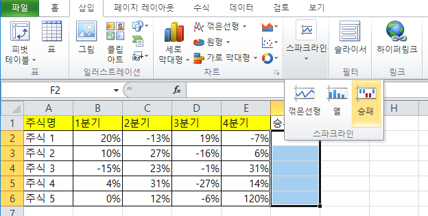 - 증가와 감소를 반복한다면 승패 차트를 이용하여 증감의 현상을 보여주기 용이