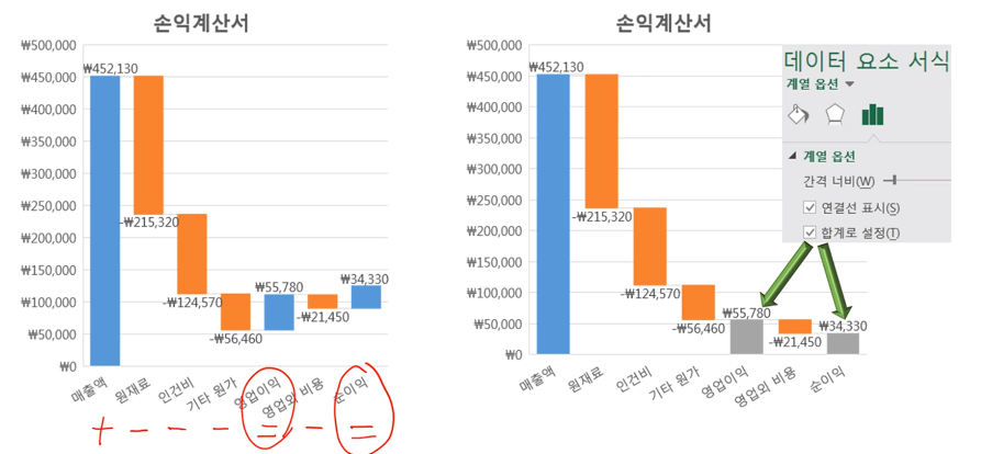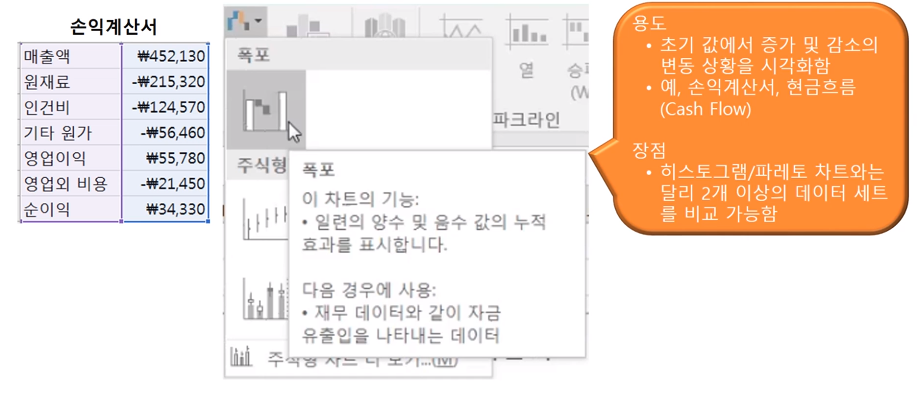 ▶ 폭포 차트 (Waterfall Chart)
