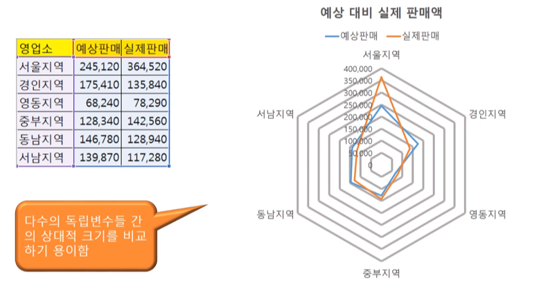 ▶ 방사형 차트 (Radar, Spider or Web Chart)