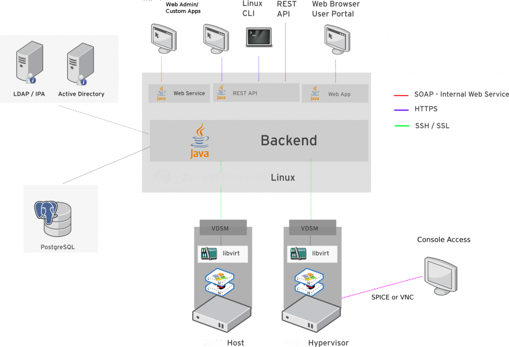 - KVM 하이퍼바이저를 사용하여 몇몇 커뮤니티 프로젝트를 기반으로 구성됨