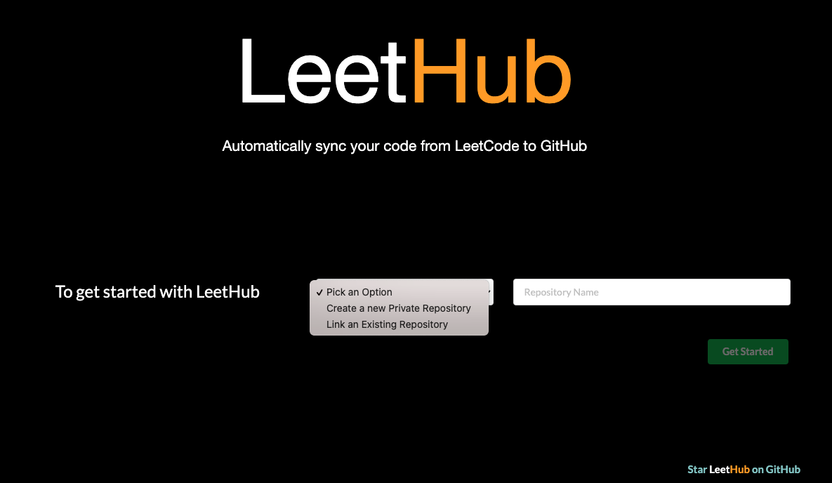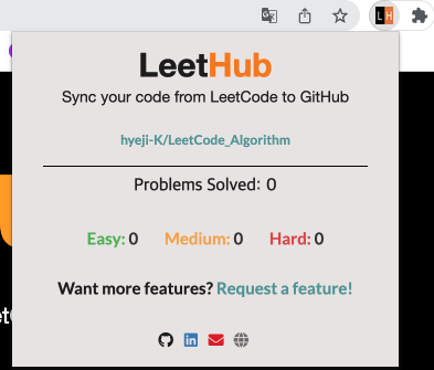 2. LeetHub을 클릭하면 아래와 같은 창이 뜨고 Authenticate 버튼을 눌러 GitHub 인증을 진행한다.