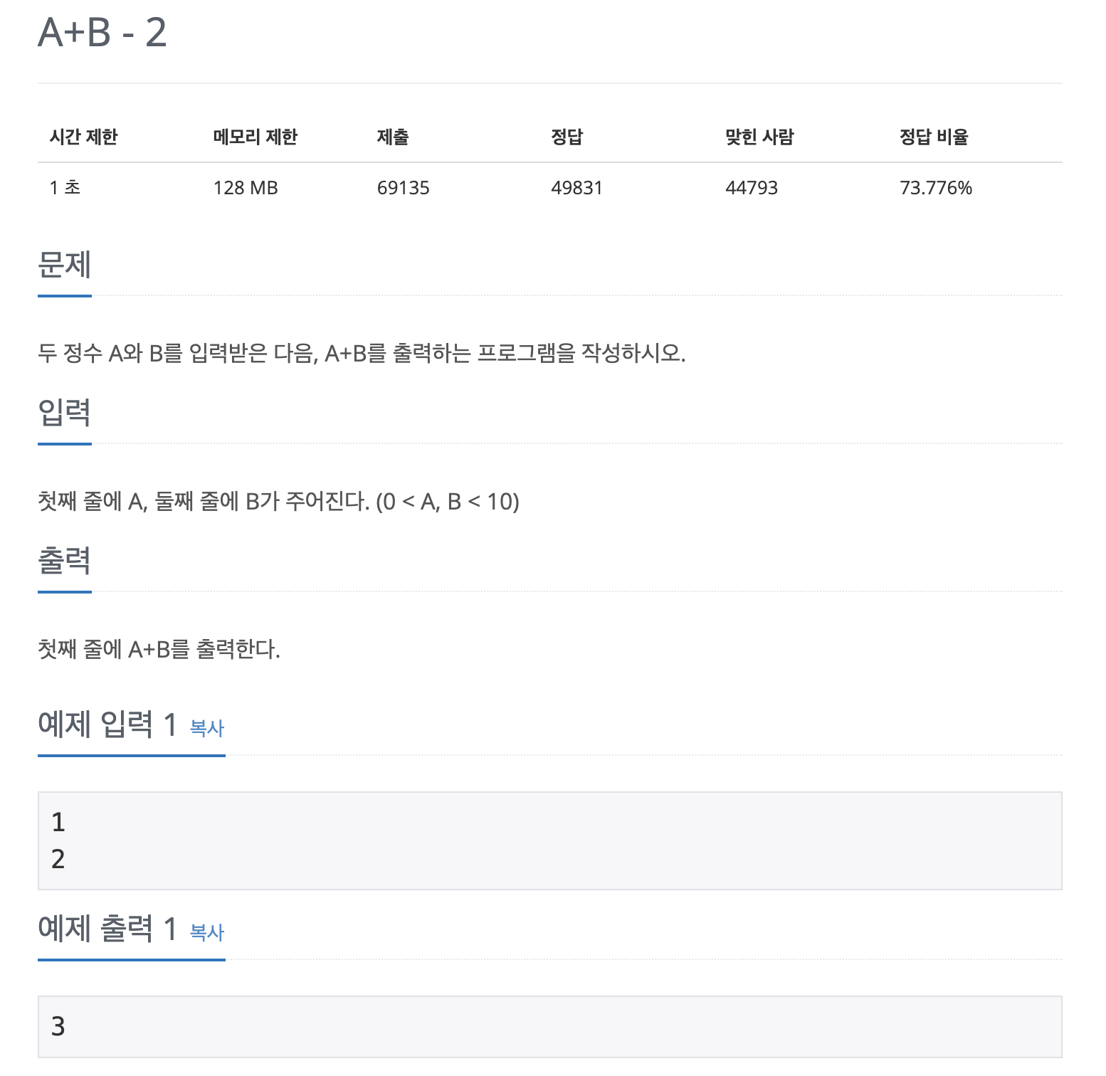 let inputNumA = Int(readLine()!)! let inputNumB = Int(readLine()!)! print(inputNumA + inputNumB)https://www.acmicpc.net/problem/2558