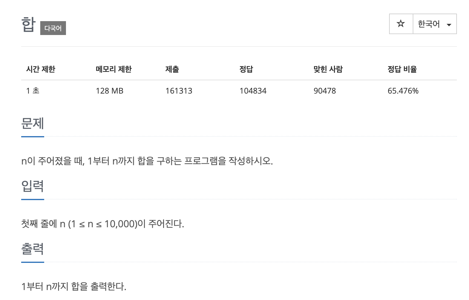 n이 주어졌을 때, 1부터 n까지 합을 구하는 프로그램을 작성하시오.