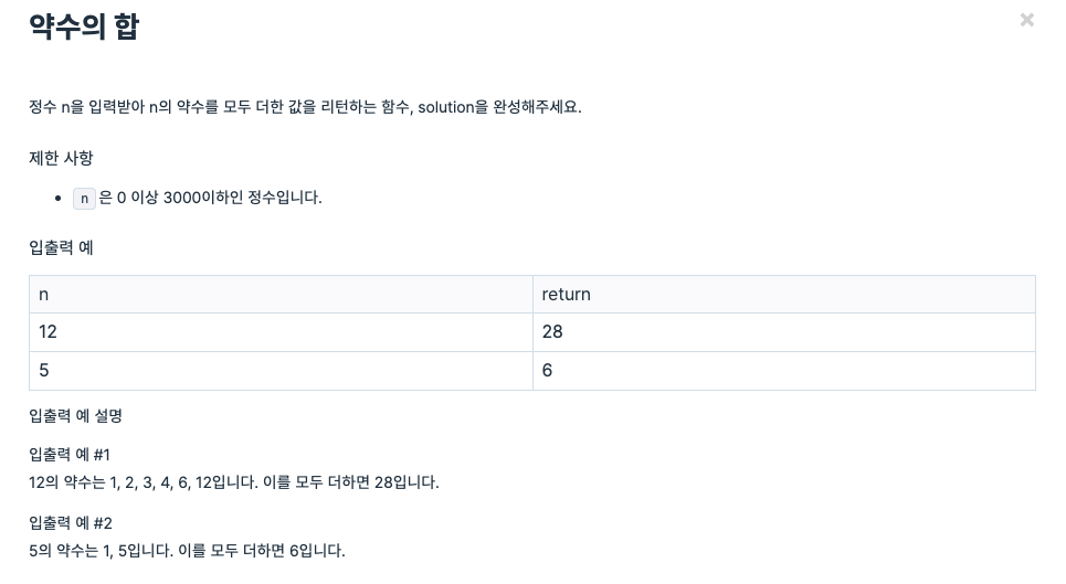 func solution(_ n:Int) -> Int { var result: Int = Int() if n > 0 { for i in 1...n { if n % i == 0 { result += i } } return result } return 0 } print(solution(12)) print(solution(5))'알고리즘' 카테고리의 다른 글