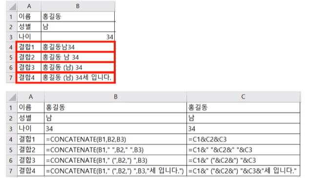 - CONCATENATE 함수