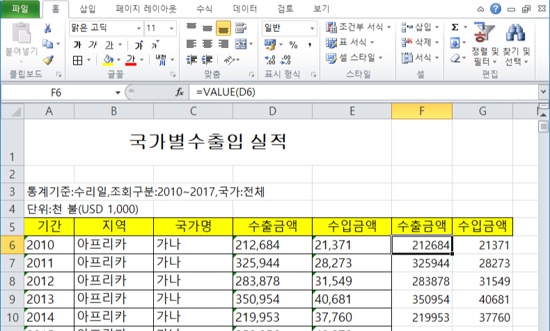 ▶ 텍스트 형식의 숫자 변환