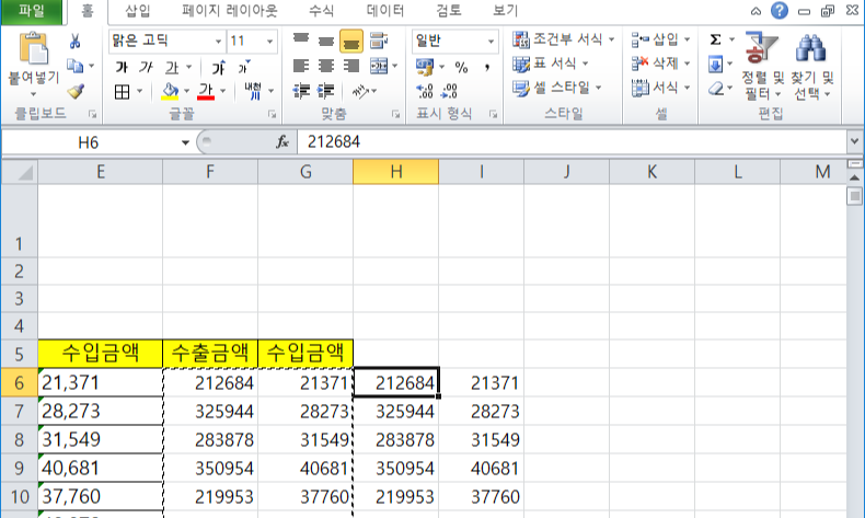 1. '붙여넣기'할 셀로 이동