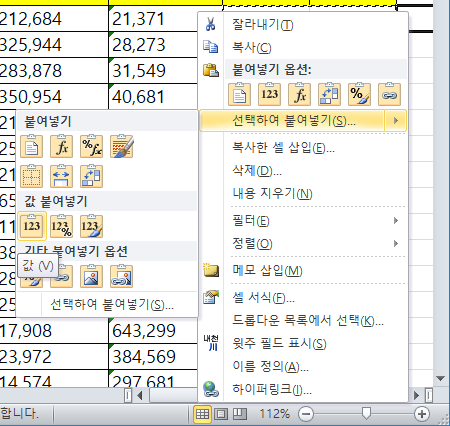 2. '붙여넣기'할 범위 지정