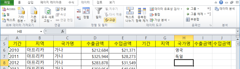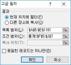 ▶ 데이터 추출 : 고급 필터링 (단수 열, OR 조건)
